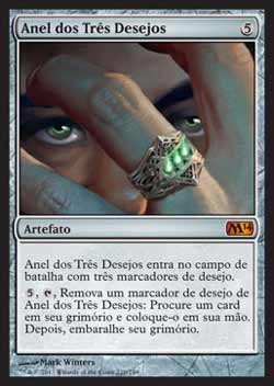 | Nome em Inglês: | Ring of Three Wishes | | Nome em Português: | Anel dos Três Desejos | | Custo de Mana: |  | | Tipo: | Artefato | | Texto: | Ring of Three Wishes entra no Campo de Batalha com três marcadores de desejo.