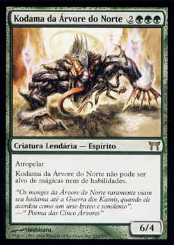 | Nome em Inglês: | Kodama of the North Tree | | Nome em Português: | Kodama da Árvore do Norte | | Custo de Mana: |     | | Tipo: | Criatura Lendária - Espírito | | Texto: | Atropelar. Manto. | | P/T: | 6/4 | | Série: |  | | Raridade: | Raro | | Card: | 222 |