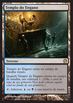 | Nome em Inglês: | Temple of Deceit | | Nome em Português: | Templo do Engano | | Tipo: | Terreno | | Texto: | Temple of Deceit entra no Campo de Batalha virado. Quando Temple of Deceit entrar no Campo de Batalha, Vidência 1.