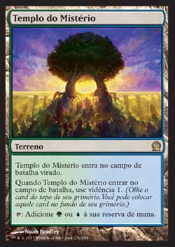| Nome em Inglês: | Temple of Mystery | | Nome em Português: | Templo do Mistério | | Tipo: | Terreno | | Texto: | Temple of Mystery entra no Campo de Batalha virado. Quando Temple of Mystery entrar no Campo de Batalha, Vidência 1.