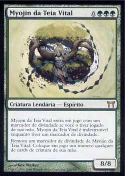 | Nome em Inglês: | Myojin of Life's Web | | Nome em Português: | Myojin da Teia Vital | | Custo de Mana: |     | | Tipo: | Criatura Lendária - Espírito | | Texto: | Myojin of Life's Web entra no Campo de Batalha com um marcador de divindade sobre ele se você o tiver Conjurado de sua mão. Myojin of Life's Web é Indestrutível enquanto houver um marcador de divindade nele. Remova um marcador de divindade de Myojin of Life's Web: Coloque qualquer número de cards de criatura de sua mão no Campo de Batalha. | | P/T: | 8/8 | | Série: |  | | Raridade: | Raro | | Card: | 229 |
