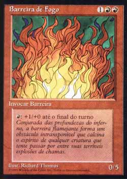 | Nome em Inglês: | Wall of Fire | | Nome em Português: | Barreira de Fogo | | Custo de Mana: |    | | Tipo: | Criatura - Barreira | | Texto: | Defensor.