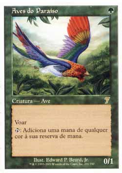 | Nome em Inglês: | Birds of Paradise | | Nome em Português: | Aves do Paraíso | | Custo de Mana: |  | | Tipo: | Criatura - Ave | | Texto: | Voar.