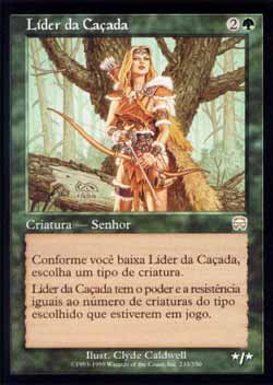 | Nome em Inglês: | Caller of the Hunt | | Nome em Português: | Líder da Caçada | | Custo de Mana: |   | | Tipo: | Criatura - Humano | | Texto: | Conforme Caller of the Hunt entra no Campo de Batalha, escolha um tipo de criatura. O poder e a resistência de Caller of the Hunt são ambos iguais ao número de criaturas do tipo escolhido que houver no Campo de Batalha. | | P/T: | */* | | Série: |  | | Raridade: | Raro | | Card: | 233 |