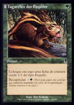 | Nome em Inglês: | Chatter of the Squirrel | | Nome em Português: | Tagarelice dos Esquilos | | Custo de Mana: |  | | Tipo: | Feitiço | | Texto: | Coloque no Campo de Batalha uma ficha de criatura verde 1/1 do tipo Esquilo. Recapitular  . | | Série: |  | | Raridade: | Comum | | Card: | 233 |