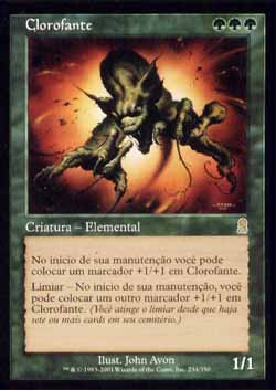 | Nome em Inglês: | Chlorophant | | Nome em Português: | Clorofante | | Custo de Mana: |    | | Tipo: | Criatura - Elemental | | Texto: | No início de sua Etapa de Manutenção, você pode colocar um marcador +1/+1 em Chlorophant. Limiar - no início de sua Etapa de Manutenção, você pode colocar outro marcador +1/+1 em Chlorophant. | | P/T: | 1/1 | | Série: |  | | Raridade: | Raro | | Card: | 234 |
