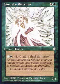 | Nome em Inglês: | Folk of the Pines | | Nome em Português: | Povo dos Pinheiros | | Custo de Mana: |   | | Tipo: | Criatura - Dríade | | Texto: |  : Folk of the Pines ganha +1/+0 até o final do turno. | | P/T: | 2/5 | | Série: |  | | Outras: | | | Raridade: | Comum | | Card: | 235 |