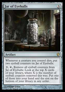 Texto:Toda vez que uma criatura que você controla Morrer, coloque dois marcadores de globo ocular em Jar of Eyeballs.