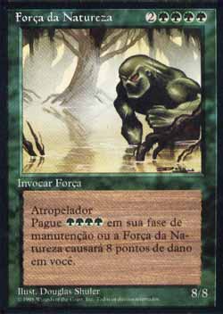 | Nome em Inglês: | Force of Nature | | Nome em Português: | Força da Natureza | | Custo de Mana: |      | | Tipo: | Criatura - Elemental | | Texto: | Atropelar. No início de sua Etapa de Manutenção, Force of Nature causa 8 pontos de dano a você a menos que você pague    . | | P/T: | 8/8 | | Série: |  | | Outras: | | | Raridade: | Raro | | Card: | 245 |