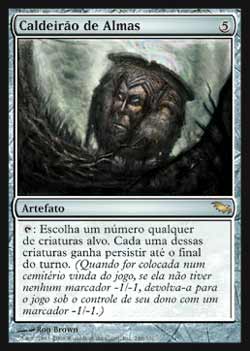 | Nome em Inglês: | Cauldron of Souls | | Nome em Português: | Caldeirão de Almas | | Custo de Mana: |  | | Tipo: | Artefato | | Texto: | : Escolha qualquer número de criaturas alvo. Aquelas criaturas têm Persistir até o final do turno. | | Série: |  | | Raridade: | Raro | | Card: | 248 |