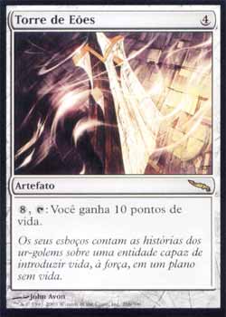 | Nome em Inglês: | Tower of Eons | | Nome em Português: | Torre dos Eões | | Custo de Mana: |  | | Tipo: | Artefato | | Texto: | , : Você ganha 10 pontos de vida. | | Série: |  | | Raridade: | Raro | | Card: | 266 |