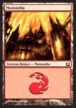 | Nome em Inglęs: | Mountain | | Nome em Portuguęs: | Montanha | | Tipo: | Terreno Básico - Montanha | | Texto: | : Adiciona a sua reserva de mana. | | Série: |  | | Outras: | | | Raridade: | Terreno Básico | | Card: | 269 |