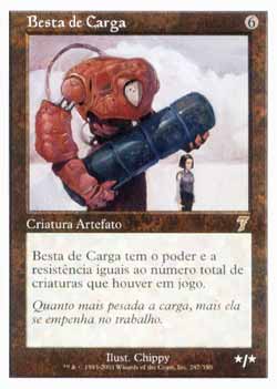 | Nome em Inglês: | Beast of Burden | | Nome em Português: | Besta de Carga | | Custo de Mana: |  | | Tipo: | Criatura Artefato - Golem | | Texto: | O poder e a resistência de Beast of Burden são ambos iguais ao número de criaturas no Campo de Batalha. | | P/T: | */* | | Série: |  | | Outras: | | | Raridade: | Raro | | Card: | 287 |