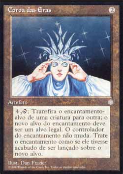 | Nome em Inglês: | Crown of the Ages | | Nome em Português: | Coroa das Eras | | Custo de Mana: |  | | Tipo: | Artefato | | Texto: | , : Anexe a Aura alvo que estiver anexada em uma criatura em outra criatura. | | Série: |  | | Outras: | | | Raridade: | Raro | | Card: | 315 |