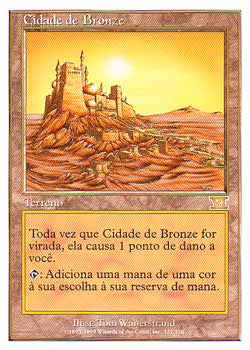 | Nome em Inglês: | City of Brass | | Nome em Português: | Cidade de Bronze | | Tipo: | Terreno | | Texto: | Toda vez que City of Brass for virado, ele causa 1 ponto de dano a você.