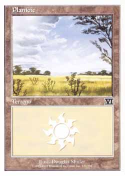 | Nome em Inglęs: | Plains | | Nome em Portuguęs: | Planície | | Tipo: | Terreno Básico - Planície | | Texto: | : Adiciona a sua reserva de mana. | | Série: |  | | Outras: | | | Raridade: | Terreno Básico | | Card: | 333 |