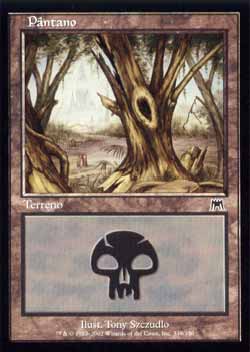 | Nome em Inglęs: | Swamp | | Nome em Portuguęs: | Pântano | | Tipo: | Terreno Básico - Pântano | | Texto: | : Adiciona a sua reserva de mana. | | Série: |  | | Outras: | | | Raridade: | Terreno Básico | | Card: | 339 |