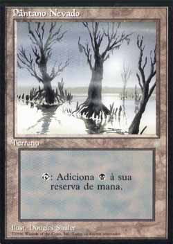 : Adiciona a sua reserva de mana. Errata: Pântanos Nevados (Era Glacial) e Pântanos da Neve (Frente Fria) contam como um mesmo tipo de terreno básico. | | Série: |  | | Outras: | | | Raridade: | Terreno Básico | | Card: | 366 |