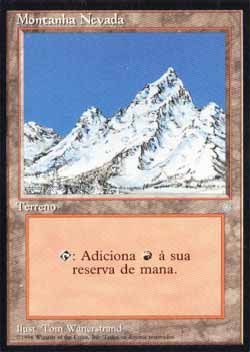 : Adiciona a sua reserva de mana. Errata: Montanhas Nevadas (Era Glacial) e Montanhas da Neve (Frente Fria) contam como um mesmo tipo de terreno básico. | | Série: |  | | Outras: | | | Raridade: | Terreno Básico | | Card: | 367 |