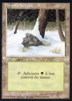 : Adiciona a sua reserva de mana. Errata: Florestas Nevadas (Era Glacial) e Florestas da Neve (Frente Fria) contam como um mesmo tipo de terreno básico. | | Série: |  | | Outras: | | | Raridade: | Terreno Básico | | Card: | 368 |