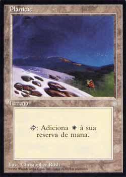 | Nome em Inglęs: | Plains | | Nome em Portuguęs: | Planície | | Tipo: | Terreno Básico - Planície | | Texto: | : Adiciona a sua reserva de mana. | | Série: |  | | Outras: | | | Raridade: | Terreno Básico | | Card: | 370 |