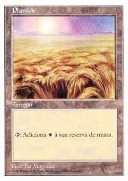| Nome em Inglęs: | Plains | | Nome em Portuguęs: | Planície | | Tipo: | Terreno Básico - Planície | | Texto: | : Adiciona a sua reserva de mana. | | Série: |  | | Outras: | | | Raridade: | Terreno Básico | | Card: | 431 |