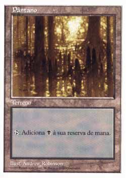 | Nome em Inglęs: | Swamp | | Nome em Portuguęs: | Pântano | | Tipo: | Terreno Básico - Pântano | | Texto: | : Adiciona a sua reserva de mana. | | Série: |  | | Outras: | | | Raridade: | Terreno Básico | | Card: | 438 |