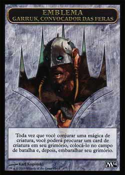 | Nome em Inglês: | Emblem - Garruk, Caller of Beasts | | Nome em Português: | Emblema - Garruk, Convocador das Feras | | Tipo: | Ficha | | Texto: | Ficha de Emblema.
