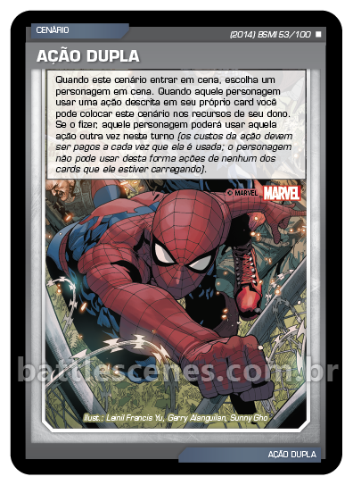 ?Vilões viram heróis. Personagens mudam de time, de nome ou de uniforme, ao sabor das reviravoltas nas sagas dos quadrinhos. Estas reviravoltas agora também fazem parte de Battle Scenes. Bem-vindo ao mundo das Múltiplas Identidades!?br> Confira alguns dos novos cards que serão apresentados em Múltiplas Identidades, a ser lançada em julho de 2014: